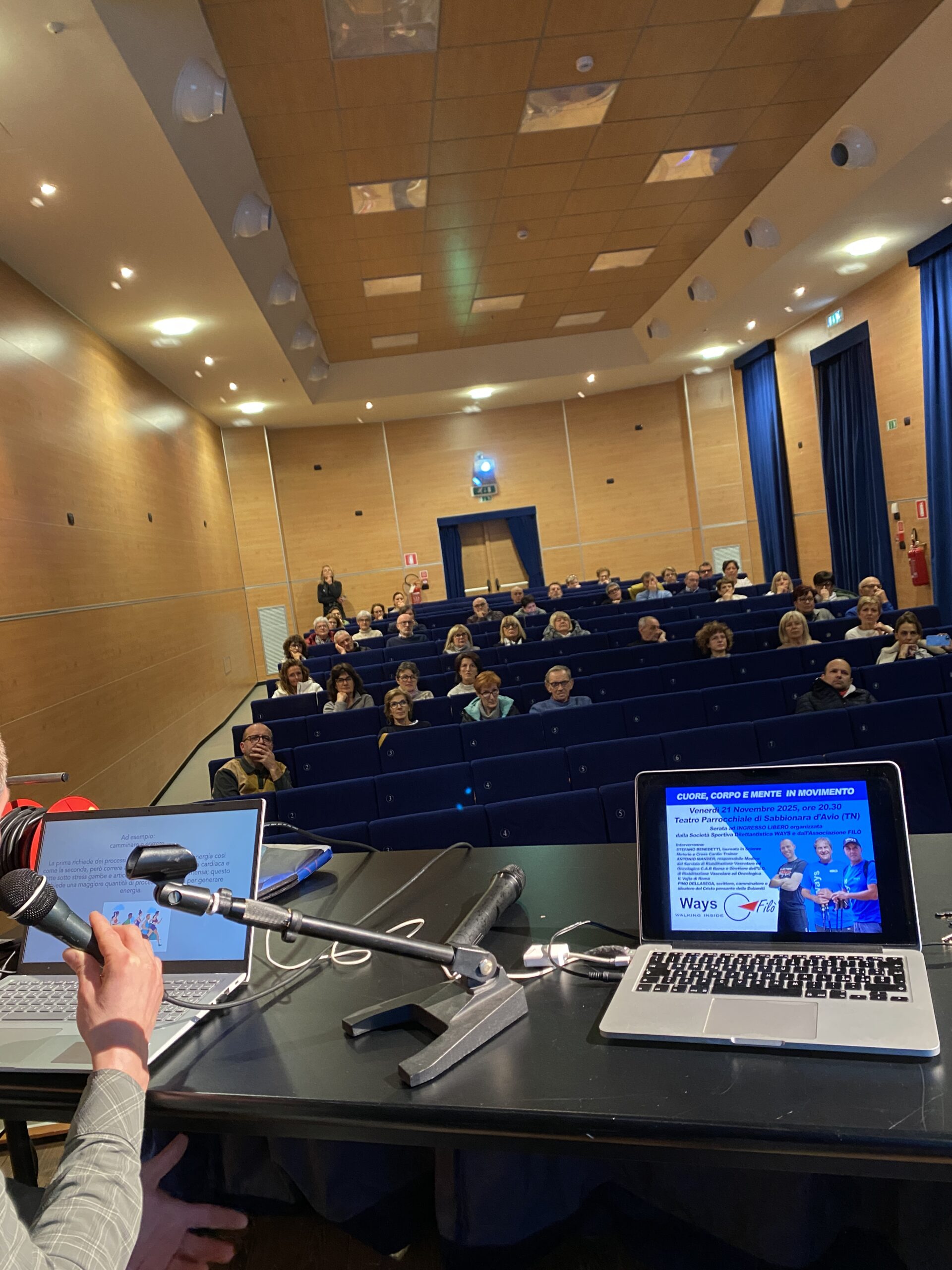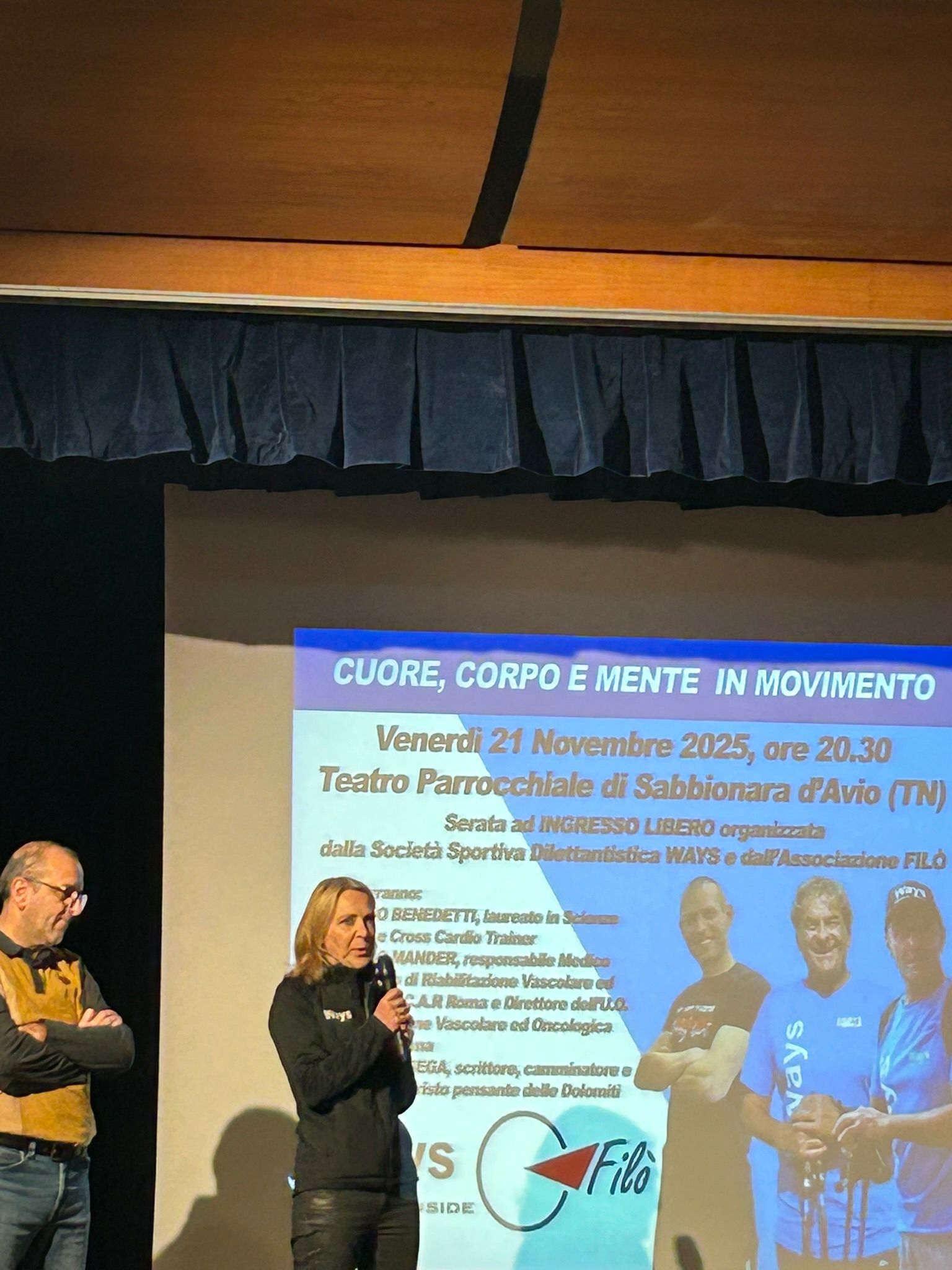Venerdì 21 novembre 2025, il teatro parrocchiale di Sabbionara d’Avio (TN) si è riempito di attenzione, motivazione ed energia per la serata “Cuore, Corpo e Mente in movimento”, un evento nato dalla collaborazione tra la società sportiva dilettantistica WAYS e l’associazione FILÒ.
